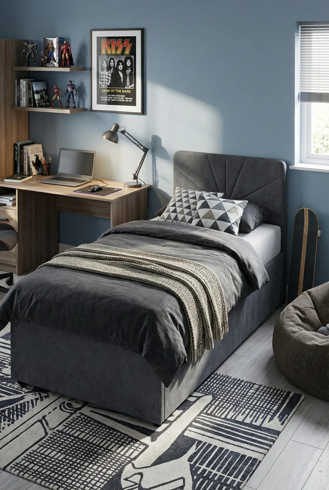 Dotyczy: Beżowe pojedyncze łóżko tapicerowane z pojemnikiem - Juno