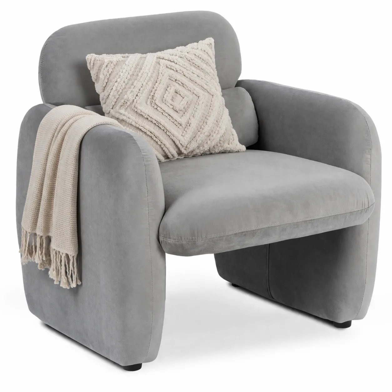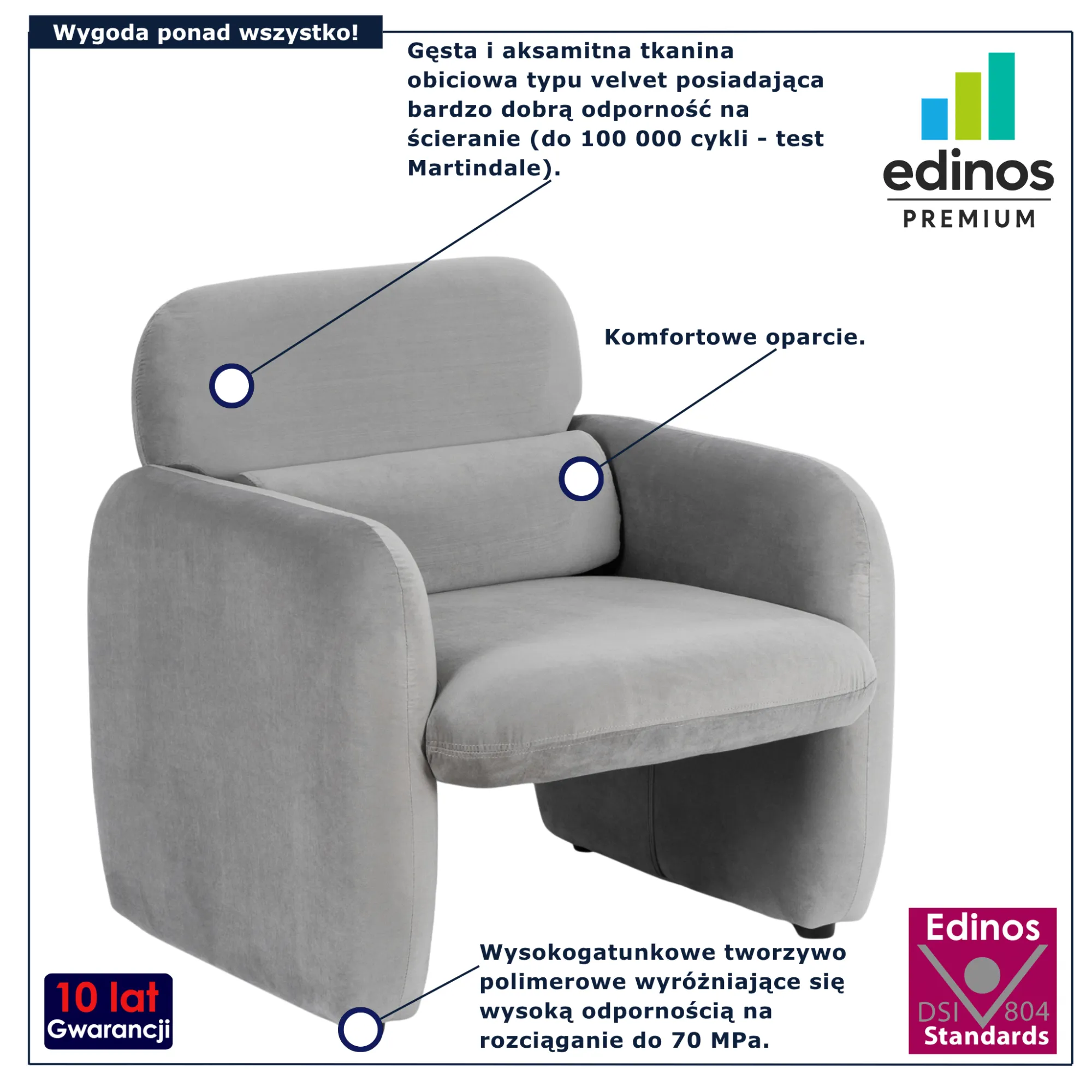 Szary welurowy fotel nowoczesny z podłokietnikami - Etilion 4X