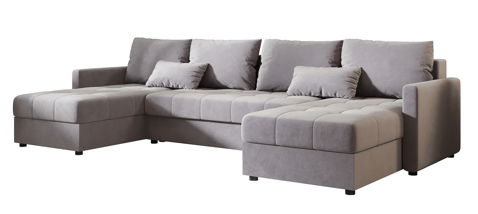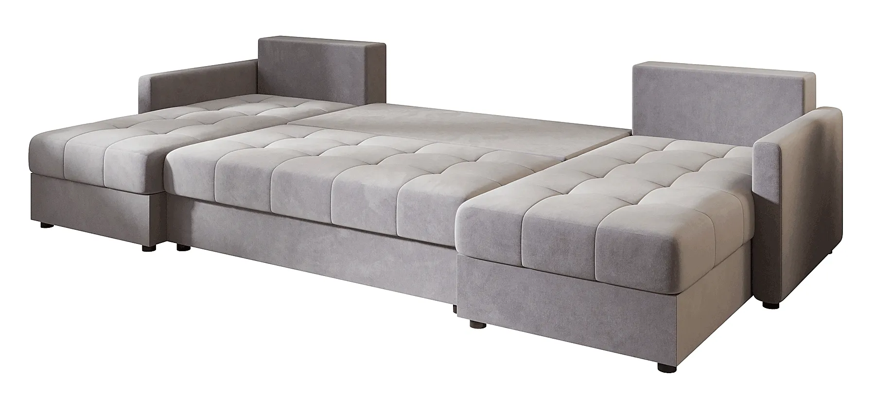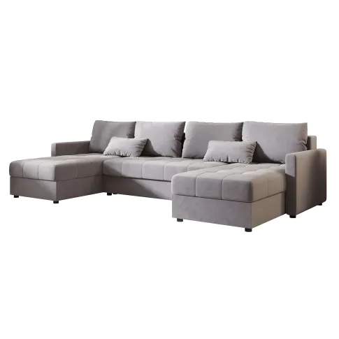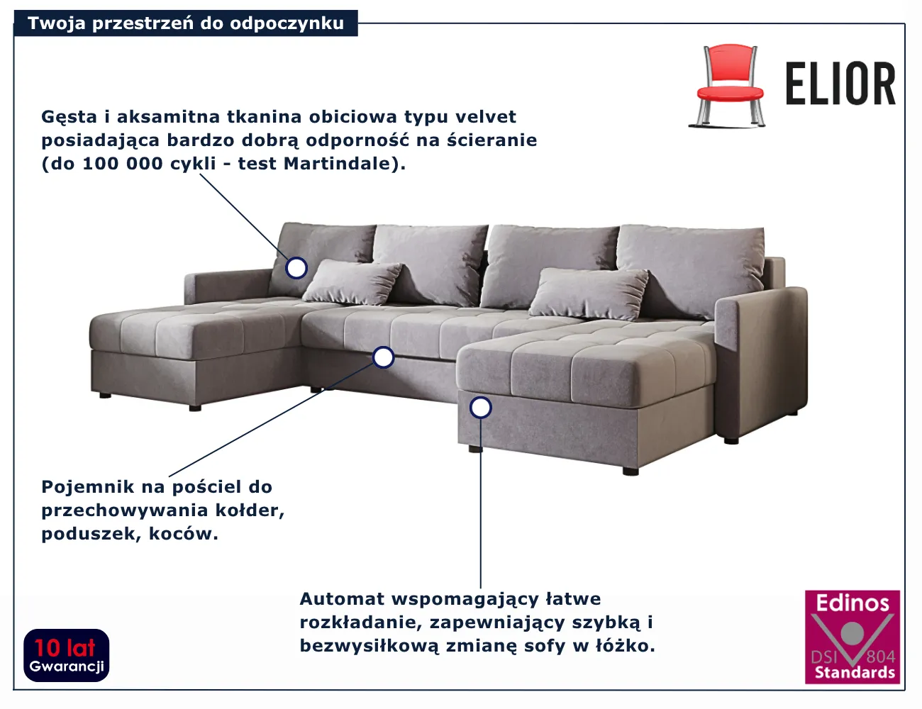 Szary welurowy narożnik rozkładany w kształcie U - Ferrano 4X