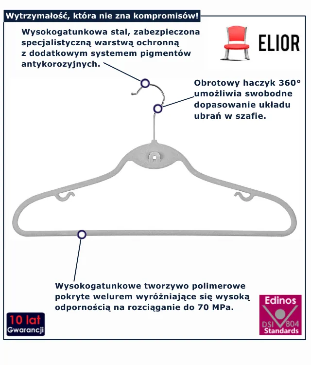 • Zapewnia idealny kształt Twoim ubraniom, zapobiegając powstawaniu nieestetycznych wgłębień na ramionach.