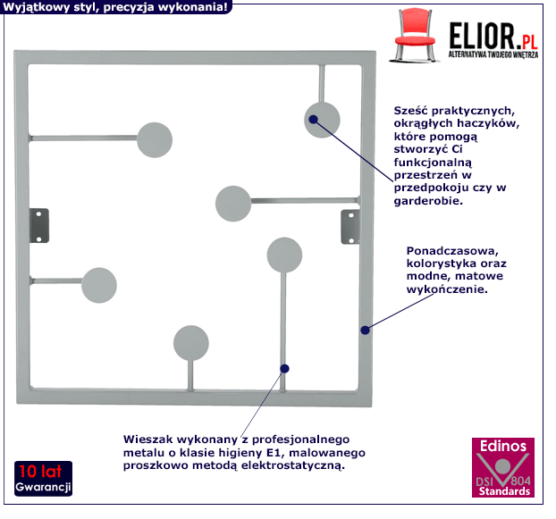 - Modna kolorystyka: szary. Kliknij w link i sprawdź także inne wieszaki do przedpokoju w sklepie Edinos.pl. Stwórz swój praktyczny zestaw mebli.