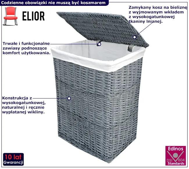 Dotyczy: Biały wiklinowy kosz na pranie 72L - Skalo