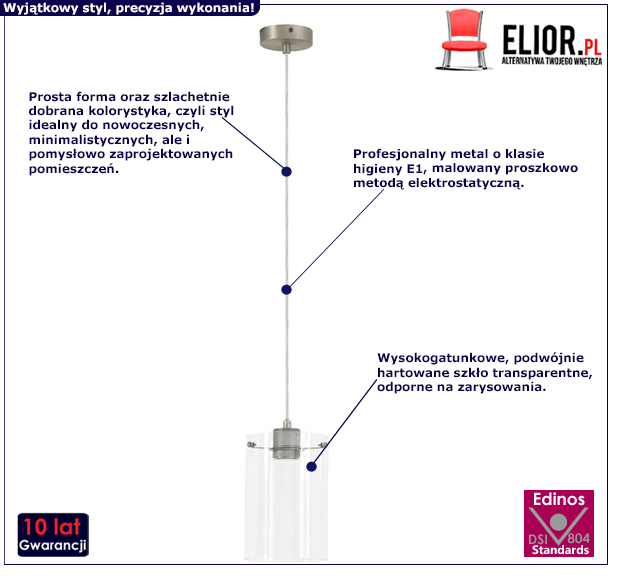 - Modna kolorystyka: transparentny, srebrny. Kliknij w link i sprawdź także inne lampy wiszące w sklepie Edinos.pl. Stwórz swój praktyczny zestaw mebli.