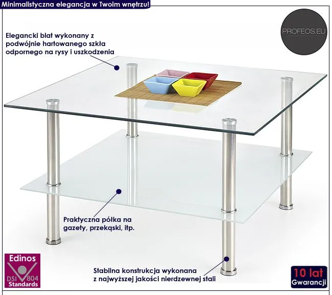 ława szklana kwadrat stolik Taros