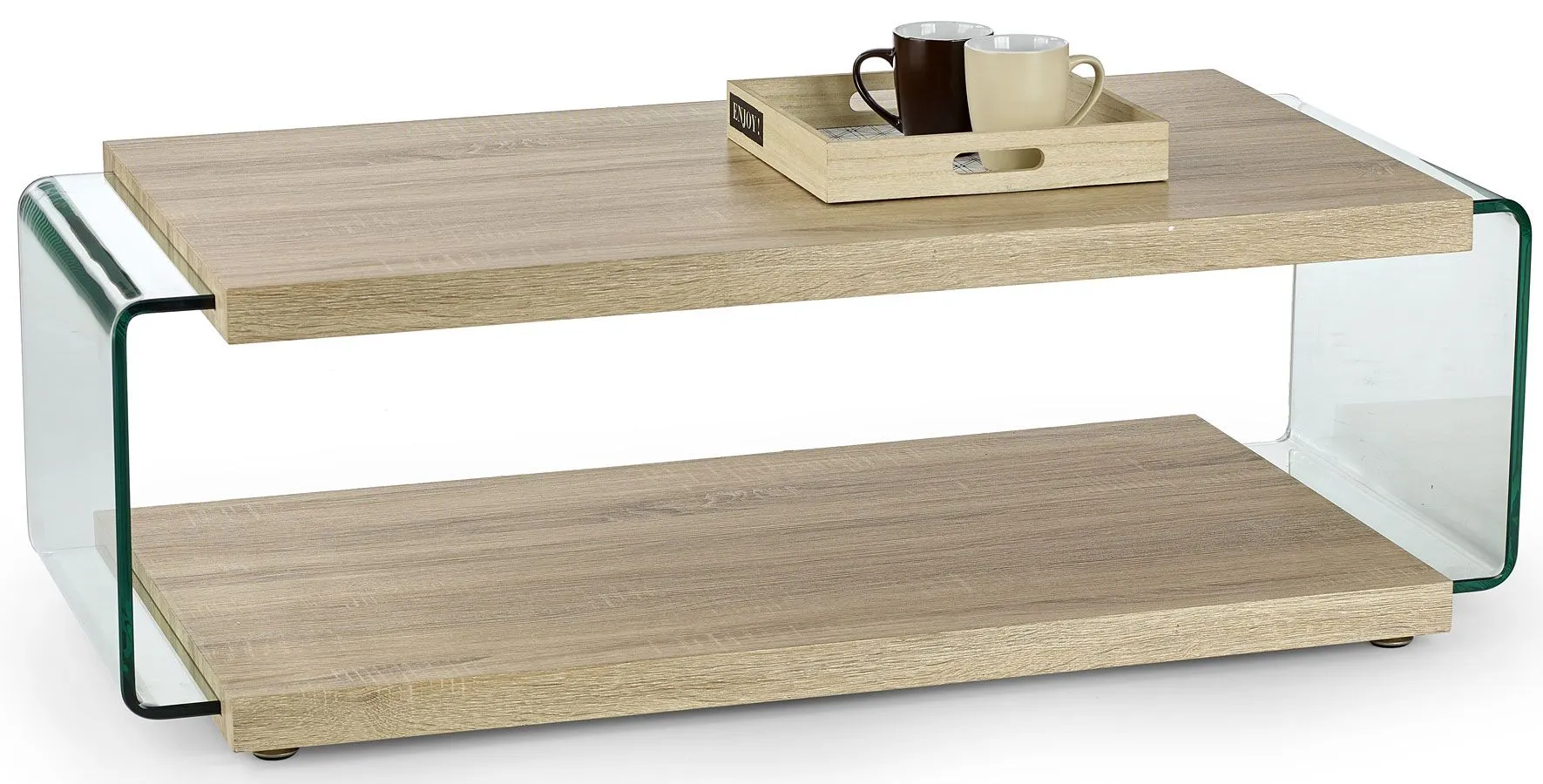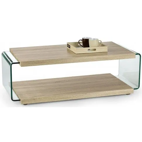 Nowoczesna ława szklana do salonu dąb sonoma Pasadena