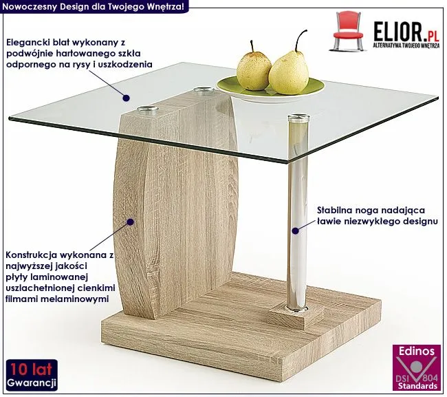 ława szklana kwadrat Tocx dąb sonoma