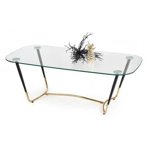 Zastanawiasz się w jaki sposób elegancko urządzić kącik kawowy? Marzysz o efekcie glamour, ale nie chcesz też przesadzić? Meble w stylu glamour często kojarzą nam się z przesadnymi, kiczowatymi i ciężkimi wizualnie. Nasz nowy projekt ukazuje ten styl w całkiem innej, nowej odsłonie. Ława Cestol stworzona została z miłości do nowoczesnej elegancji. Subtelna i lekka wizualnie forma ławy sprawia, że aranżacja nabiera wyjątkowo delikatnego charakteru i staje się zaskakująco rozświetlona. Przestronna, gładka tafla szklanego blatu unosi się na wyrafinowanej czarno-złotej podstawie dodającej ławie lekkości. Dzięki połączeniu transparentnego blatu oraz delikatnej, nienachalnej podstawy mebel ten zyskał lekkość wizualną oraz niepowtarzalną klasę. Doskonale odnajdzie się w aranżacjach w stylu glamour, nowoczesnym bądź klasycznym. Potencjał doskonałej ławy Cestol możesz wykorzystać w salonie, biurze, a także poczekalni. Cestol to bez wątpienia mebel, który powstał dla osób o wysublimowanych gustach. Wprowadź niepowtarzalny blask do swojej aranżacji i spraw by Cestol stała się główną atrakcją Twojego doskonałego kąciku gościnno-relaksacyjnego. Jesteśmy pewni, że z ogromną przyjemnością codziennie będziesz zachwycać się jej wyjątkowym designem, a ona zwróci na siebie uwagę każdego, kto się w nim pojawi!