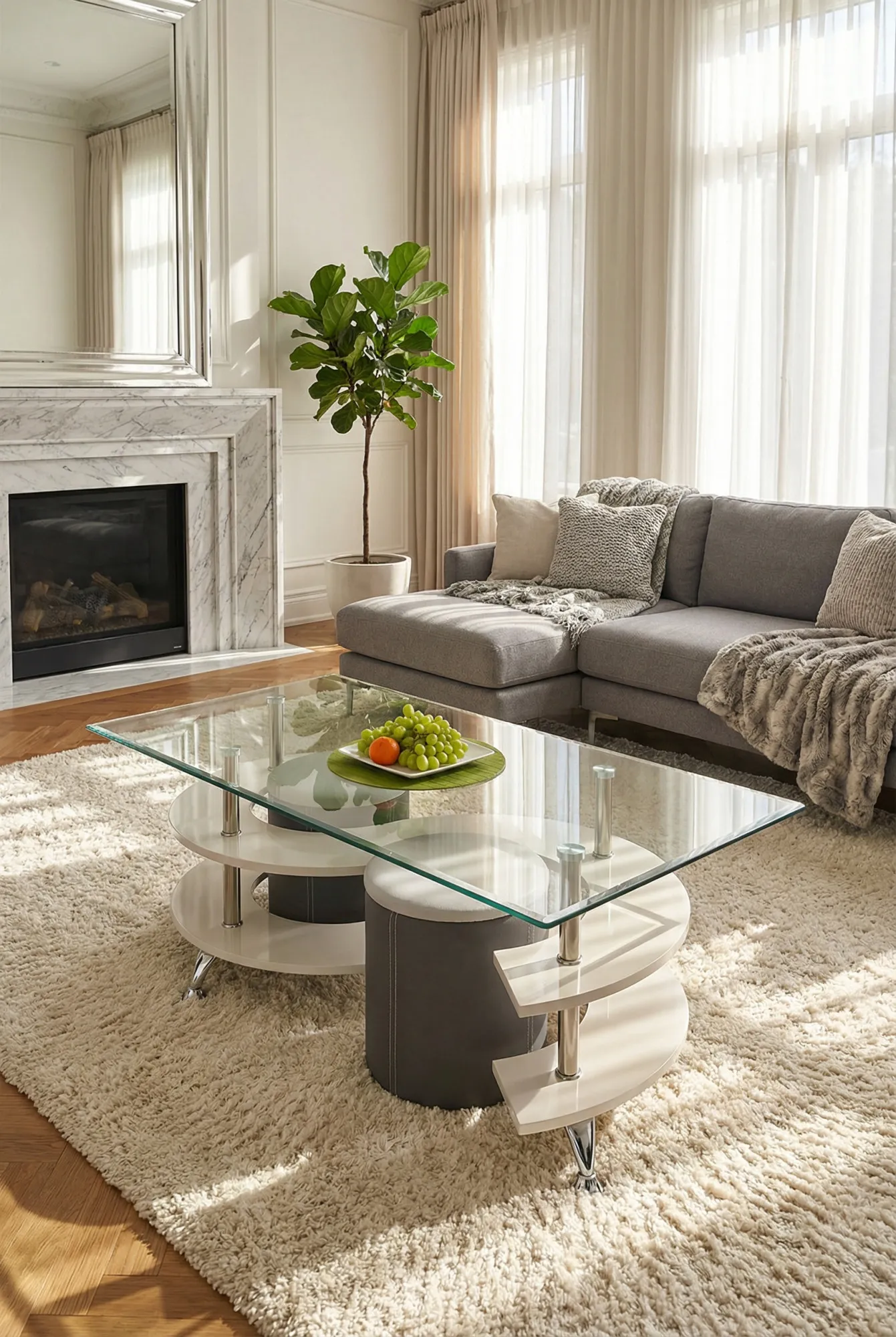 Fajna ława, bardzo ciekawa podstawa w kształcie litery S, innowacyjny pomysł, podoba mi się to. pufy super dopełniają produkt :P