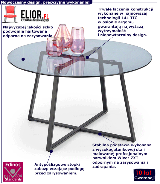 Ponieważ ława to nieodłączny element każdego salonu, perfekcyjne uzupełnienie sofy oraz niejednokrotnie charakter całego wnętrza warto zadbać o to, aby idealnie połączyła się z innymi meblami. Dobrze dobrana potrafi całkowicie odmienić wnętrze i nadać mu świeżego, nowoczesnego stylu. W ostatnim czasie bardzo popularne stały się ławy, stoły oraz stoliki kawowe ze szklanym blatem. Nic w tym dziwnego, ponieważ takie meble są doskonałym rozwiązaniem zarówno w dużych przestrzeniach, jak i mniejszych. Powiększają optycznie wnętrze i sprawiają wrażenie lekkich, wręcz niezauważalnych mebli. Doskonale wkomponowują się w wiele aranżacji i pasują idealnie do całej gamy barw. Ława Suva to nowa propozycja od marki Elior stworzona z myślą o miłośnikach designerskich, niepowtarzalnych rozwiązań. Nieskazitelnie gładka tafla blatu w dymionej odsłonie zapewnia dużo miejsca użytkowego i prezentuje się nad wyraz elegancko. Unosi się ona na czarnej modernistycznej podstawie tworząc wyjątkową całość. Suva to solidna, stabilna i ponadczasowa ława, która zachwyci Cię swoim wdziękiem i sprawi, że na długo zapomnisz o wymianie jej na nowy model. Doskonale wpasuje się we wnętrza w stylu loftowym, ale także będzie świetnym uzupełnieniem minimalistycznych przestrzeni oraz nowoczesnych aranżacji. Jej potencjał możesz wykorzystać nie tylko w salonie, ale także w pokoju młodzieżowym czy przestrzeniach komercyjnych takich jak poczekalnia, biuro czy salon kosmetyczny lub fryzjerski. Suva wprowadzi do Twojego wnętrza wyjątkowy styl i elegancki błysk!
