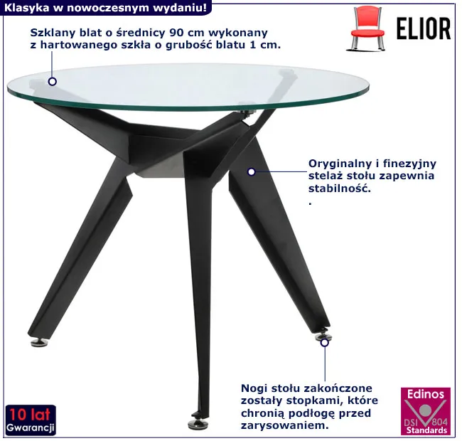 • wszechstronny okrągły blat z hartowanego szkła idealny do salonu i jadalni