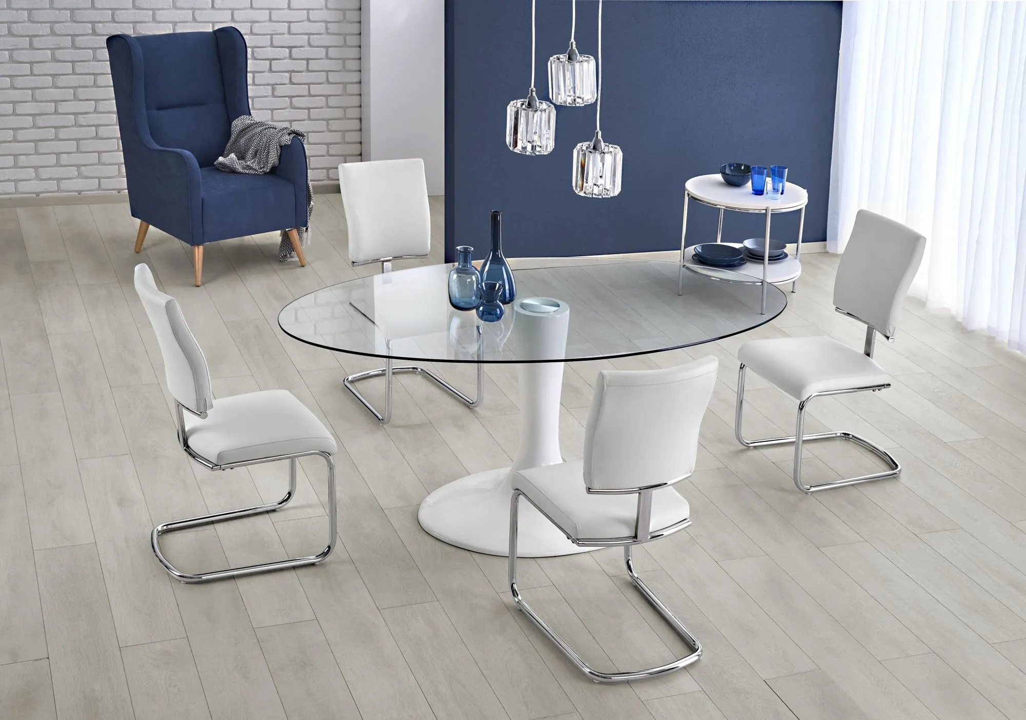 Pinki to mebel, który skradnie serce niejednemu wielbicielowi minimalistycznym, a zarazem gustownych form. Co miał na myśli projektant tego atrakcyjnego stołu? Prostotę, prostotę i jeszcze raz prostotę! Dzięki niej stół prezentuje się nie tylko wysmakowanie i wysublimowanie, lecz również uniwersalnie. Pinki świetnie odnajdzie się w różnorodnie zaaranżowanych przestrzeniach: glamour, skandynawskiej, art deco, loftowej czy romantycznej. Rewelacyjny transparentny blat połączony z rozświetlającą wnętrze bielą tworzą doskonałą bazę do aranżacyjnych eksperymentów. Stół sam w sobie stanowi efektowną, interesując ozdobę, jednak bez trudu dobierzesz do niego ulubione dekoratorskie dodatki. Pinki jest takim meblem, który pozwala poczuć się wyjątkowo we wnętrzu. Kreuje on niepowtarzalny, szlachetny klimat, który zachwyca już od progu.