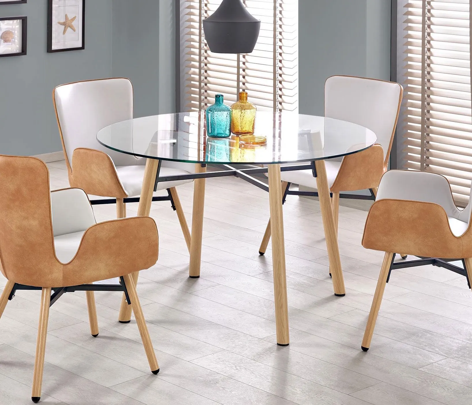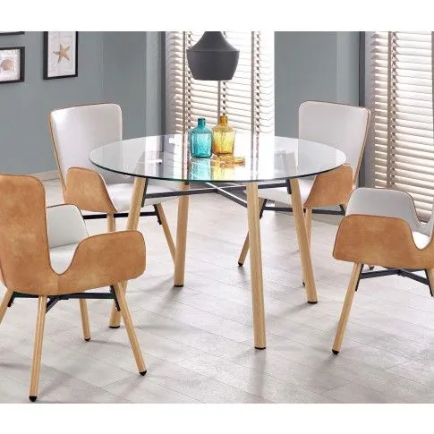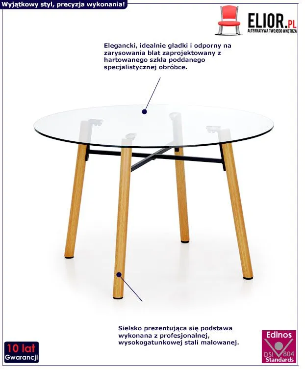 - Modny kolor: nowoczesny transparentny blat oraz nogi w naturalnym wydaniu buk