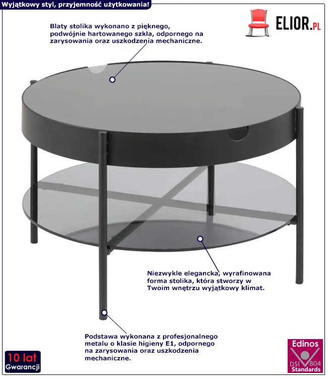 - Modny kolor: blat przydymiony, konstrukcja czarna. Kliknij w link i sprawdź także inne nowoczesne stoliki kawowe w sklepie Edinos.pl. Stwórz swój praktyczny zestaw mebli.