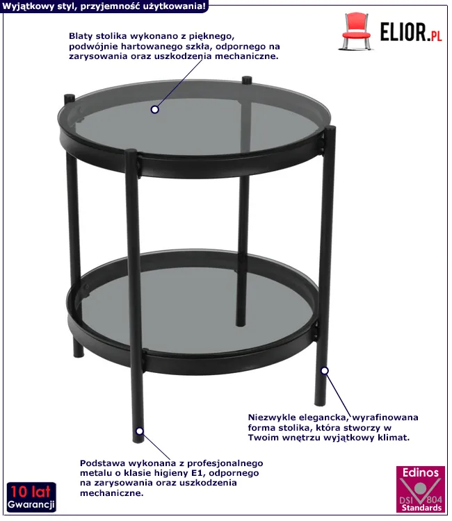 - Modny kolor: blat przydymiony, konstrukcja czarna. Kliknij w link i sprawdź także inne nowoczesne stoliki kawowe w sklepie Edinos.pl. Stwórz swój praktyczny zestaw mebli.