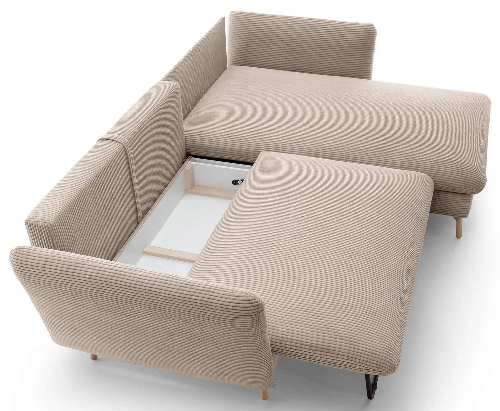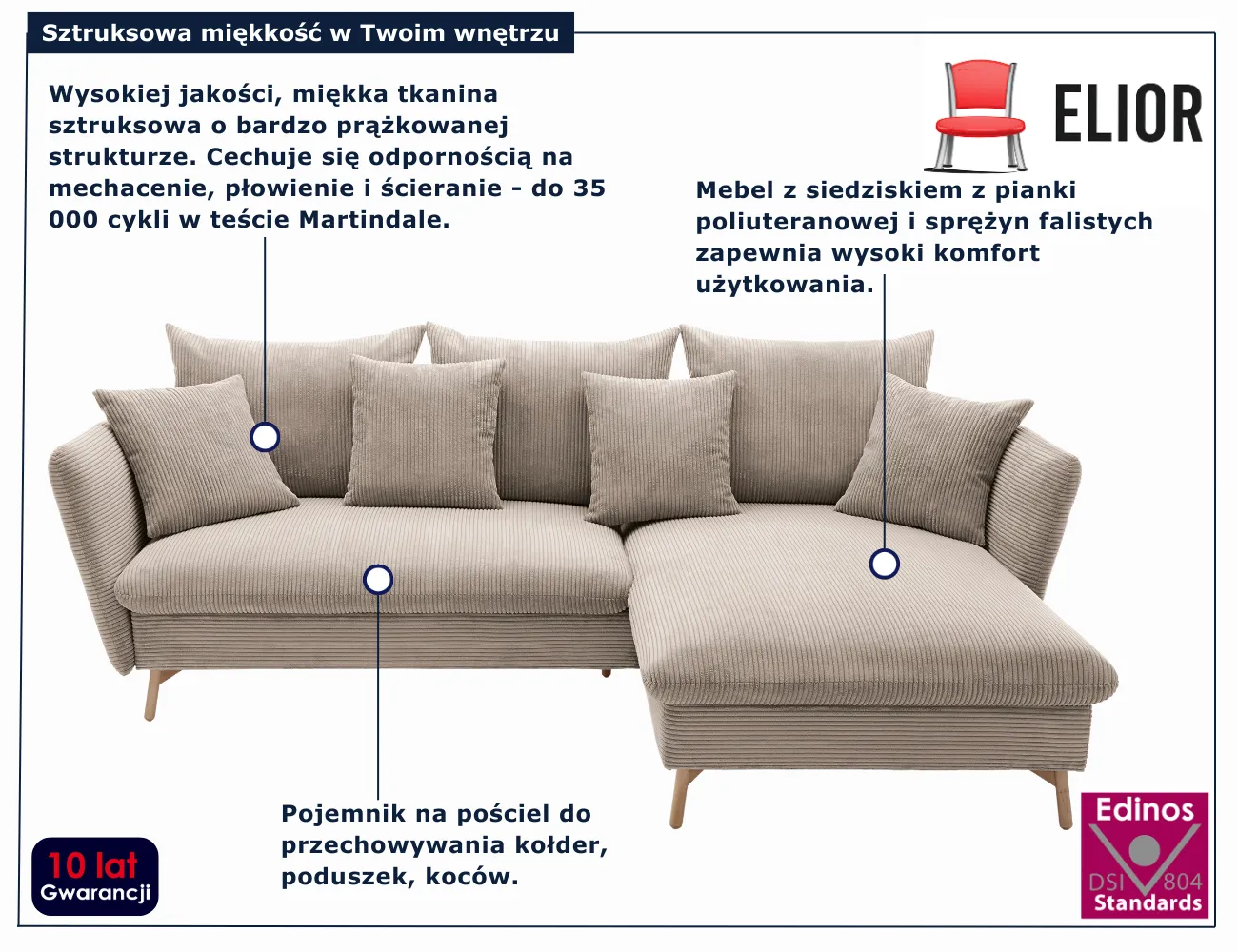 Sztruksowa kanapa narożna rozkładana cappuccino - Vettio