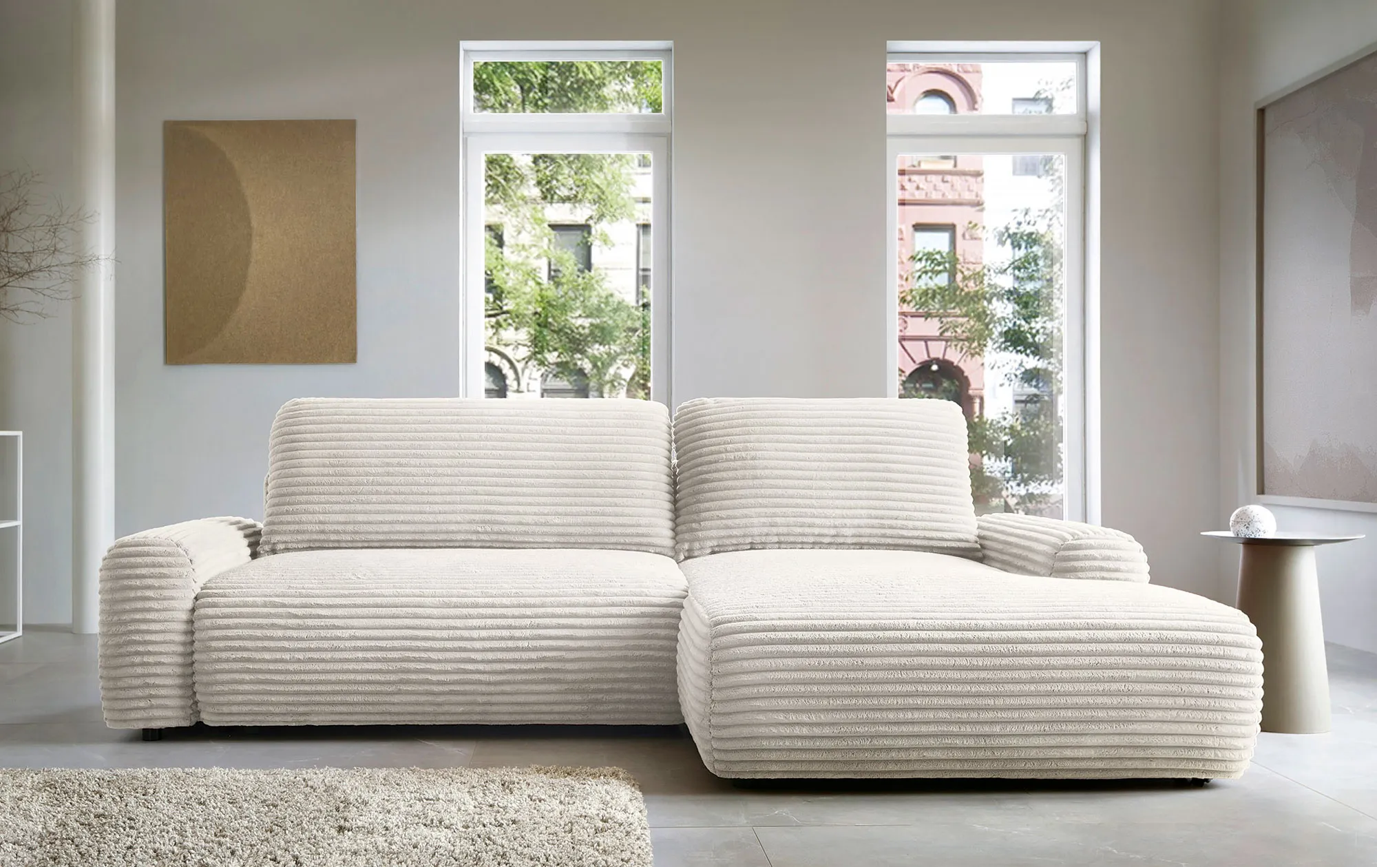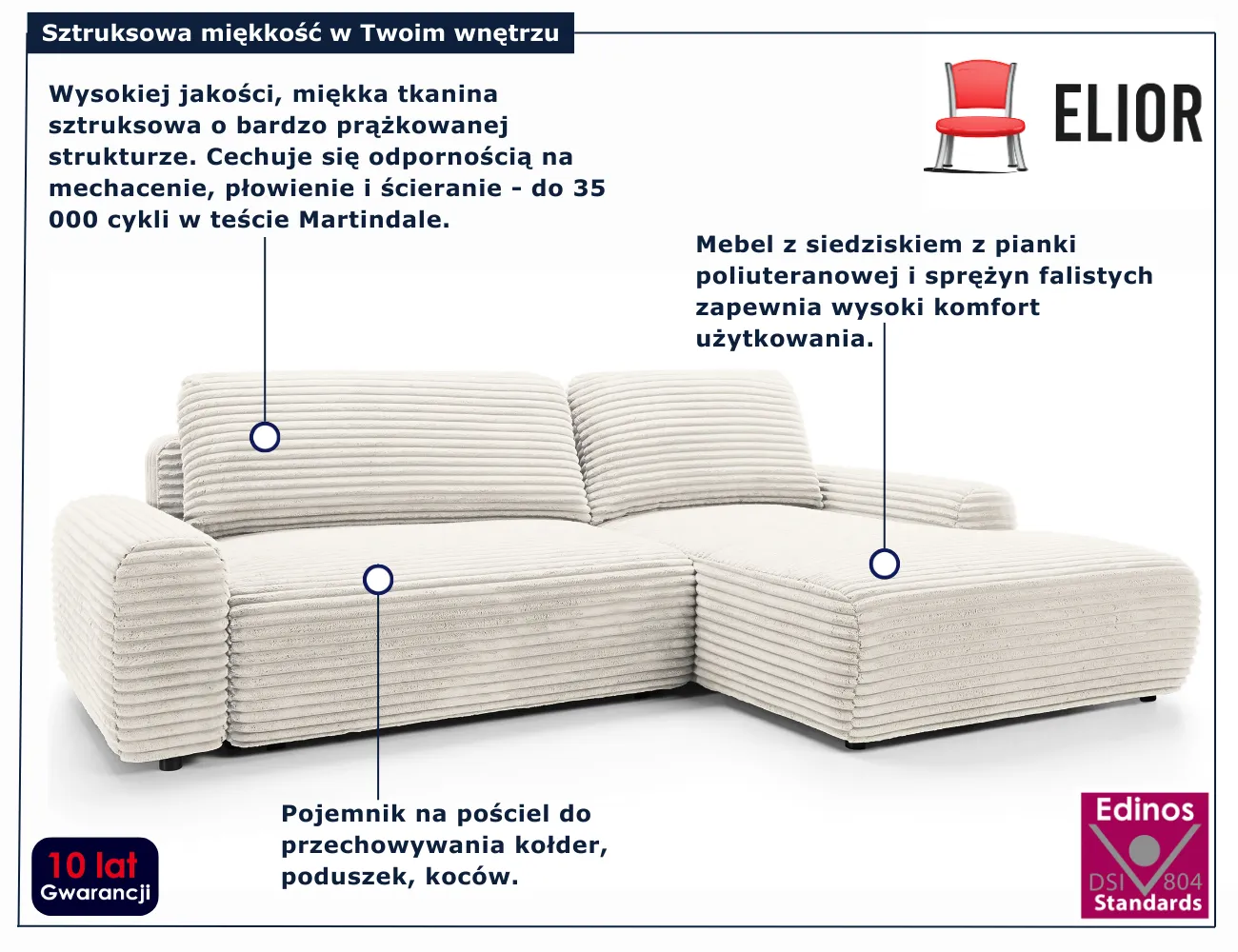 Dotyczy: Szara sztruksowa kanapa narożna z funkcją spania - Obelis
