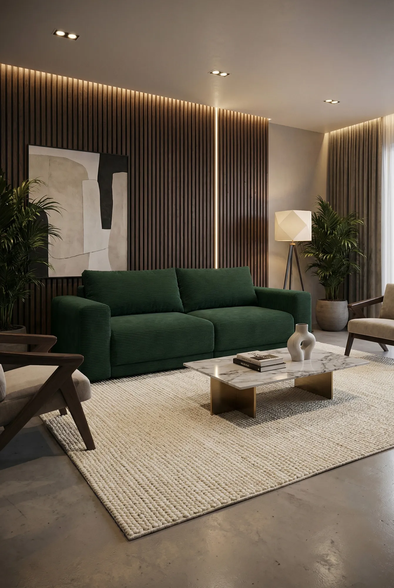 Wizualizacja wnętrza z wykorzystaniem kanapy narożnika Dierra butelkowa zieleń