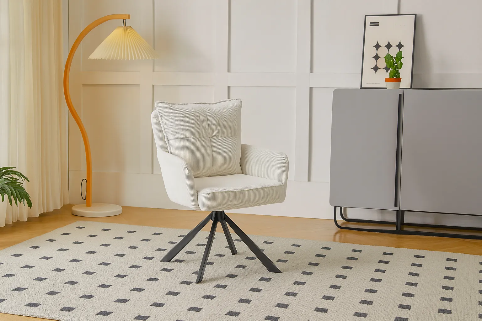 Sztruksowy kremowy fotel obrotowy - Herry