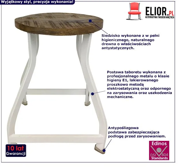 - Modna kolorystyka: naturalne drewno, biały. Kliknij w link i sprawdź także inne taborety industrialne w sklepie Edinos.pl. Stwórz swój praktyczny zestaw mebli.