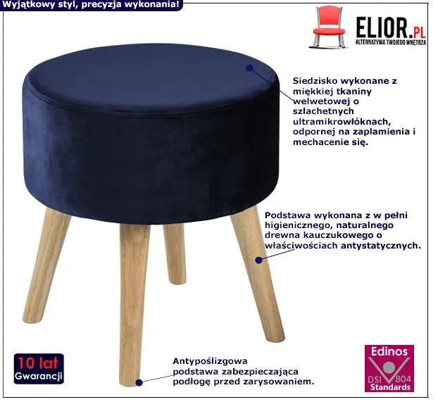 - Modna kolorystyka: naturalne drewno, granatowy. Kliknij w link i sprawdź także inne taborety skandynawskie w sklepie Edinos.pl. Stwórz swój praktyczny zestaw mebli.