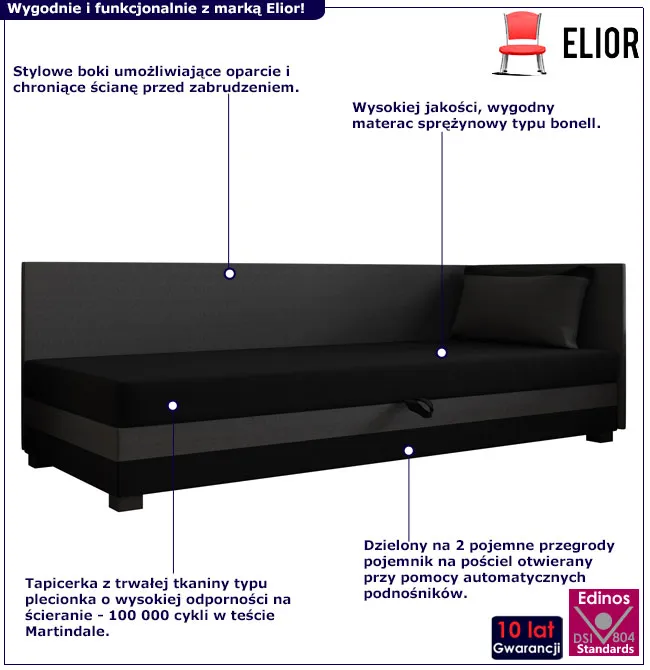 Dotyczy: Tapczan z poduszką i pojemnikiem jasny szary + ciemny szary Haxel - 5 rozmiarów