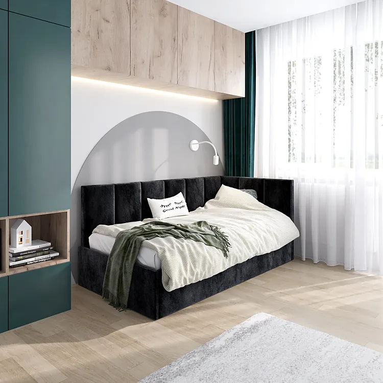 Tapicerowane czarne łóżko młodzieżowe 100x200 - Golones 4X