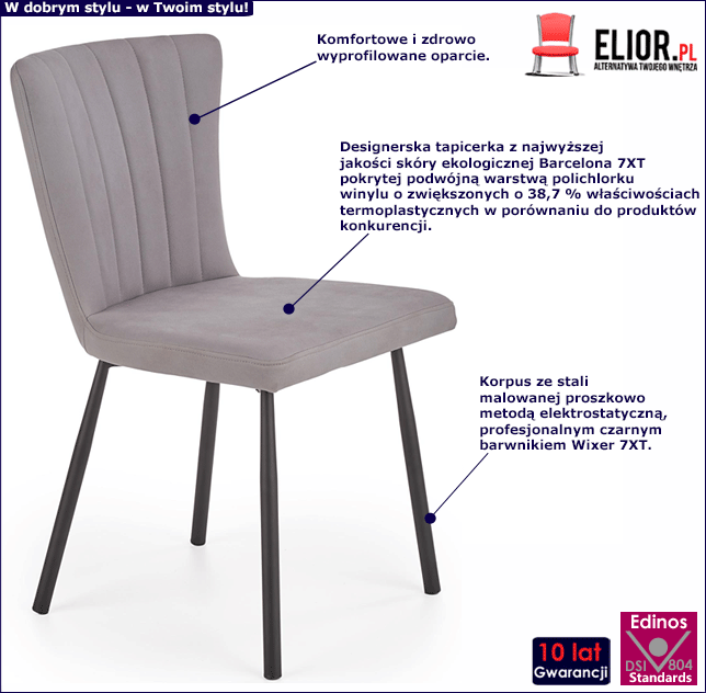 • Kolor: Popielata tapicerka i czarne nóżki. Kliknij w link i zobacz też inne popielate krzesła w sklepie Edinos.pl - na pewno znajdziesz coś dla siebie!