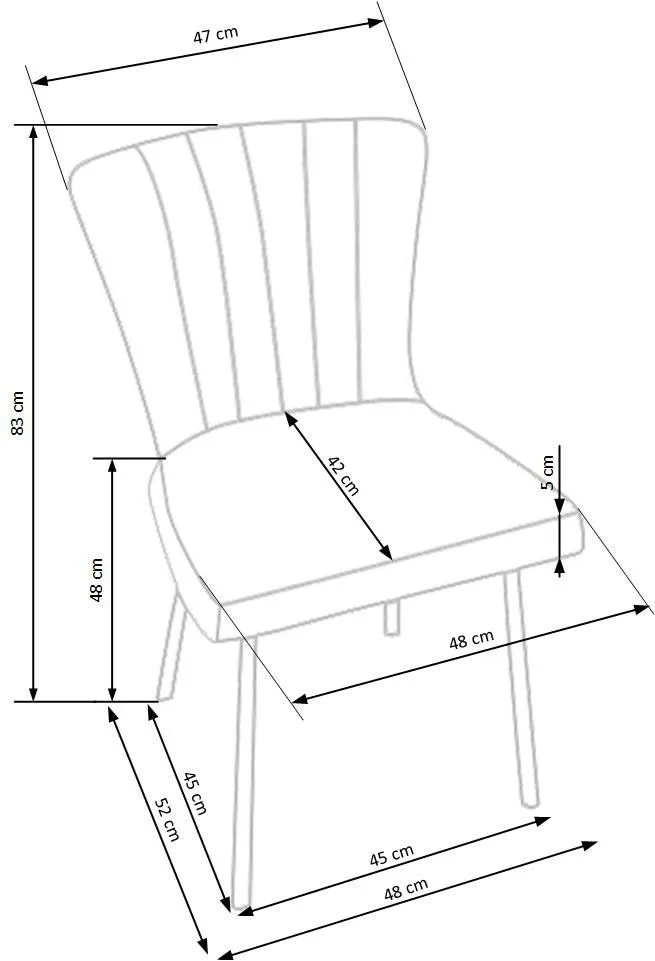 • Wymiary: wysokość całkowita: 83 cm, szerokość całkowita: 48 cm, głębokość całkowita: 52 cm, wysokość siedziska: 48 cm, głębokość siedziska: 42 cm, szerokość siedziska: 48 cm.