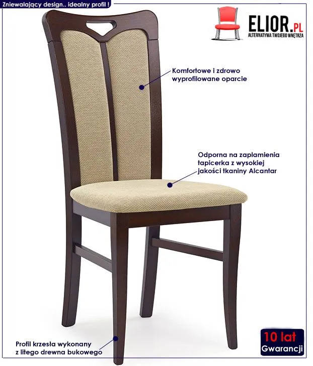 Tapicerowane krzesło drewniane Reza - ciemny orzech