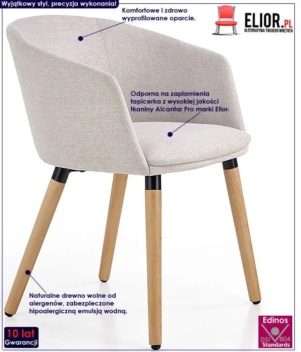 - Modny kolor: Tapicerka jasnopopielata, profil krzesła w kolorze buk. Kliknij w link i sprawdź także inne krzesła skandynawskie w sklepie Edinos.pl. Stwórz swój praktyczny zestaw mebli.