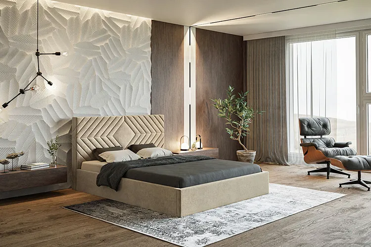 Aranżacja z tapicerowanym łóżkiem Flawa 4X