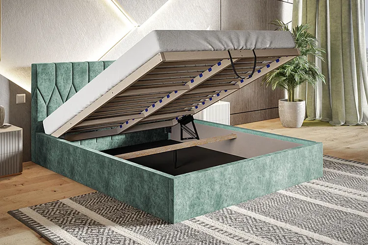 Tapicerowane łóżko Antalya 3X to propozycja marki Elior wyróżniająca się profesjonalną jakością, ponadczasową trwałością i nieszablonowym designem. Podstawę łóżka stanowi mocna skrzynia o grubości 16 mm, wykonana z drewna naturalnego i płyty meblowej zbudowanej z włókien drzewnych i związków organicznych. Na skrzyni obitej pianką o grubości T25 i tapicerowanej szlachetną tkaniną welwetową opiera się doskonały jakościowo stelaż o maksymalnym obciążeniu aż do 200 kg, otwierany za pomocą nowoczesnych podnośników sprężynowych. Stelaż wykonany ze sprężynujących listewek z naturalnego drewna brzozowego ułatwia cyrkulację powietrza pod materacem, dzięki czemu wydłuża żywotność materaca. Dodatkową zaletą łóżka Antalya 3X jest praktyczny pojemnik na pościel, wykonany z mocnej tkaniny technicznej, przymocowanej do ramy za pomocą rzepów. Tak zaprojektowane łóżko Antalya 3X marki Elior zjawiskowo urządzi sypialnię i zapewni zdrowy, pełnowartościowy sen.