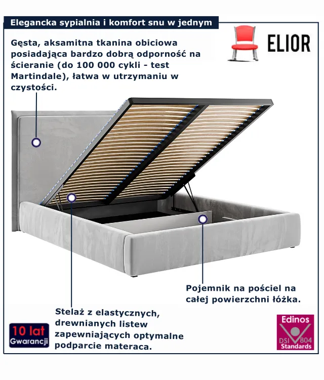 • Stabilny stelaż z listwami sprężynującymi – elastyczne podparcie materaca i trwałość na lata