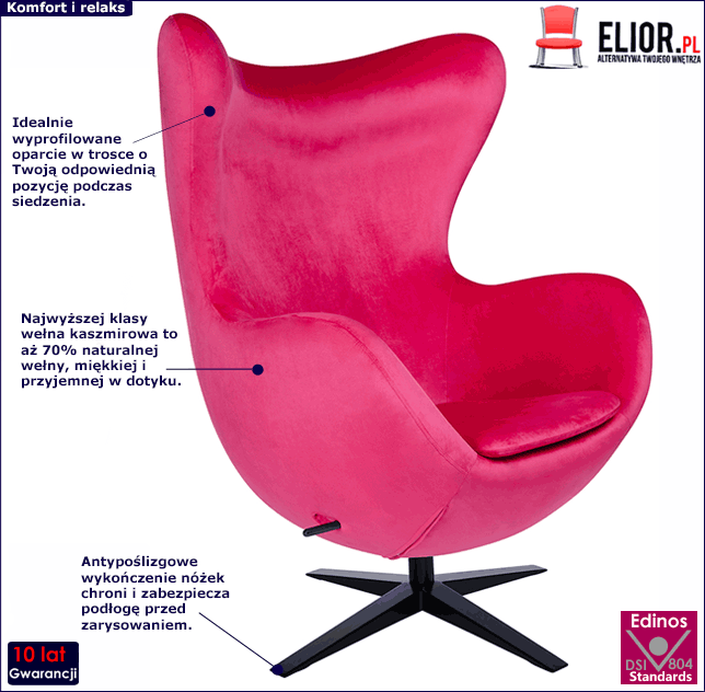 - Modna kolorystyka: tapicerka w kolorze fuksja i czarna podstawa. Kliknij w link i sprawdź także inne fotele typu uszak w sklepie Edinos.pl. Stwórz swój praktyczny zestaw mebli.