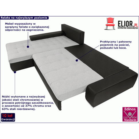 Skorzystaj z atrakcyjnej okazji i stwórz w swoim domu azyl, o którym zawsze marzyłeś! Poczuj się komfortowo i swobodnie we własnym salonie zapewniając sobie ponadczasowy wypoczynek. Zamów już dzisiaj wygodny i modny narożnik z funkcją spania Negros marki Edinos Premium w świetnej cenie 3648 zł.