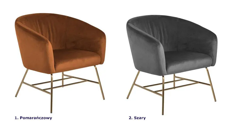 - Kolor: pomarańczowa tapicerka i złote nóżki. Kliknij w link i zobacz też inne fotele welwetowe w sklepie Edinos.pl - na pewno znajdziesz coś dla siebie!