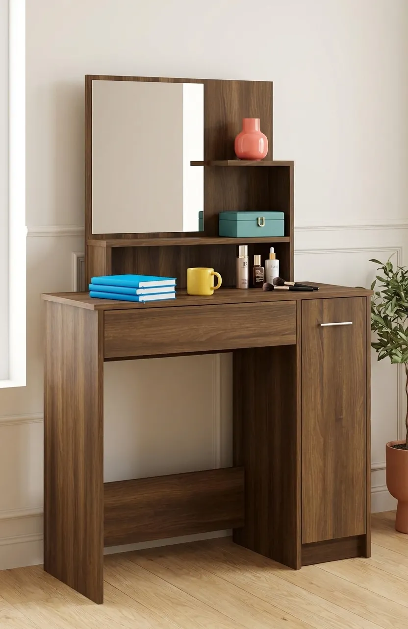 Wąska toaletka do makijażu z lustrem Haleb 3X brązowy dąb