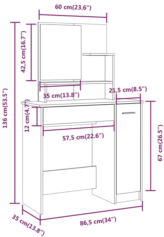 Dotyczy: Skandynawska toaletka z lustrem dąb sonoma - Haleb 3X