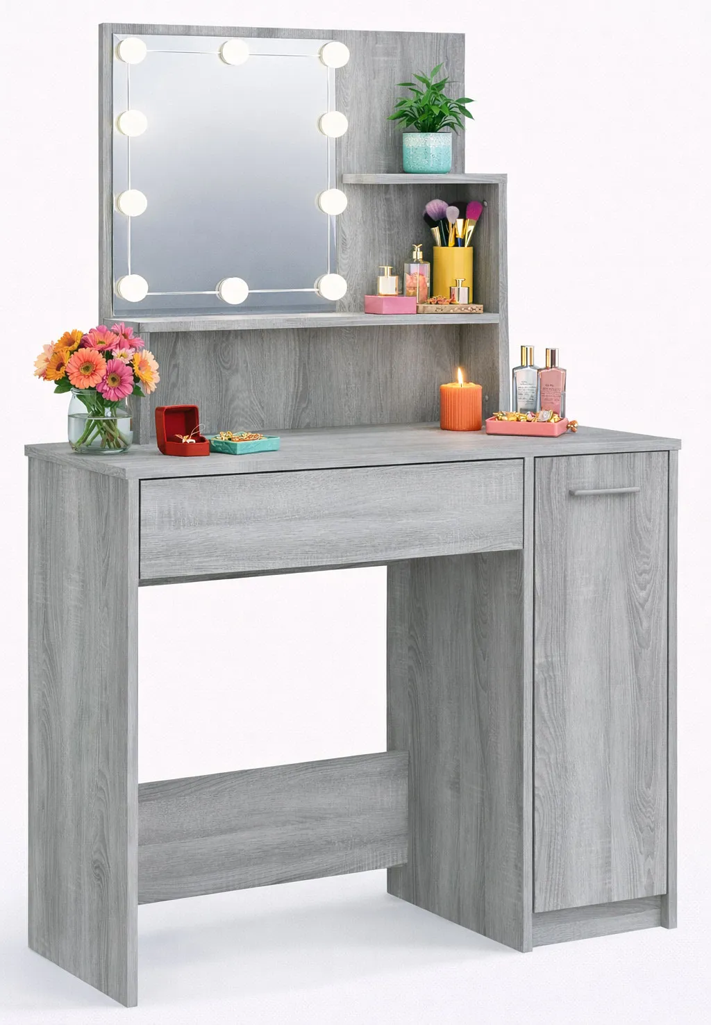 Dotyczy: Toaletka kosmetyczna z szafką i lustrem LED brązowy dąb - Haleb 4X