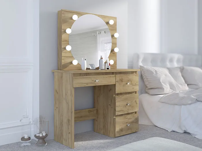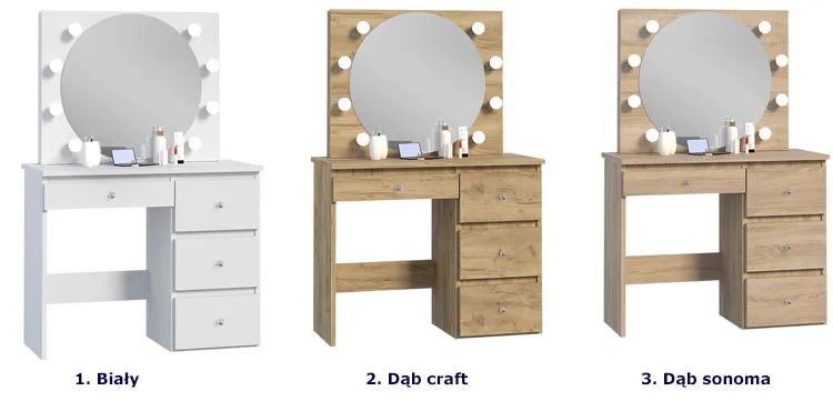 • Kolor: dąb craft. W naszej ofercie posiadamy także inne toaletki podświetlane z lampkami.