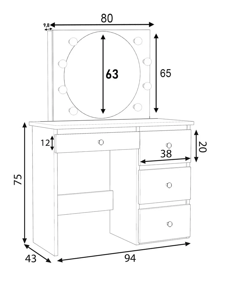 Zacznij każdy dzień od chwili tylko dla siebie, otoczona elegancją, która przekształca zwykłe poranki w sesje odnowy w stylu spa. Toaletka Kaviro 3X od Edinos Premium, z jej blaskiem i stylem, zaprasza Cię do świata, gdzie każdy szczegół Twojej pielęgnacji zasługuje na złote ramy. Dzięki 8 żarówkom LED, umieszczonym wokół okrągłego lustra, toaletka Kaviro 3X zapewnia idealne oświetlenie do makijażu - światło, które nie zmienia kolorów, a jedynie podkreśla naturalne piękno. Delikatne uchwyty w kształcie diamentów, elegancka linia i minimalistyczna forma powodują, że toaletka Kaviro 3X to dzieło sztuki użytkowej, które przyciąga wzrok. Niech każdy detal, od szlachetnie wykonanych szuflad po misternie zaprojektowane uchwyty, przypomina o wyjątkowości chwil spędzonych przed tym lustrem.?
