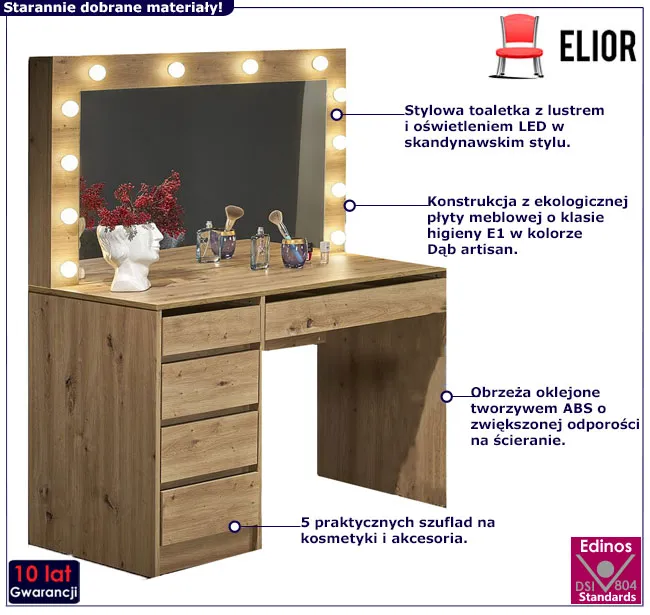 • Kolor: Dąb artisan. Kliknij w link i sprawdź też inne toaletki do sypialni w sklepie Edinos.pl.