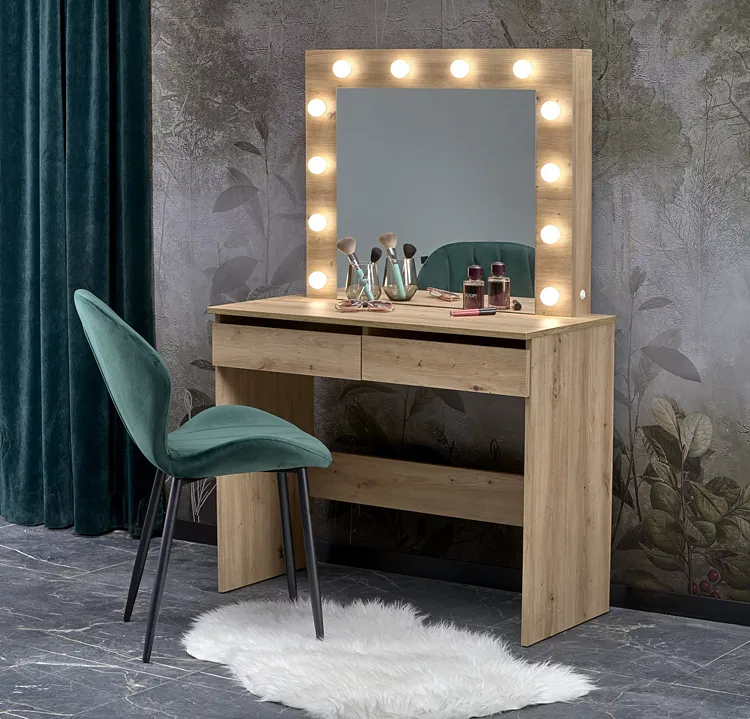 minimalistyczna toaletka z oświetlonym lustrem dąb artisan Priam