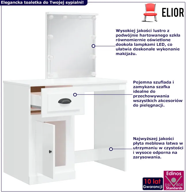 Dotyczy: Biała toaletka z lustrem z lampkami LED - Ergik