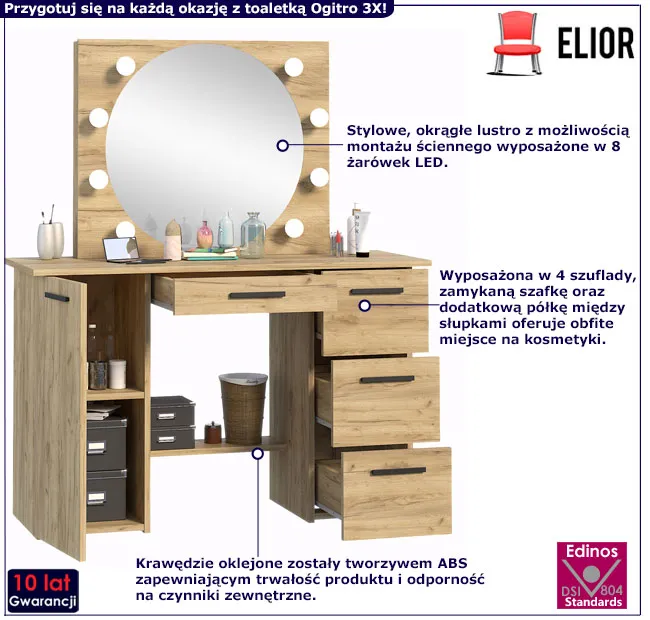 Dotyczy: Nowoczesna toaletka z lustrem dąb craft - Katia 4X