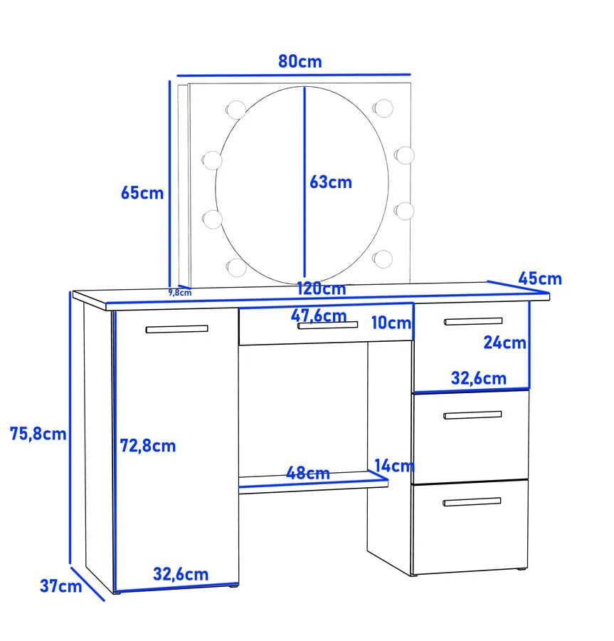 Dotyczy: Toaletka z lustrem i 9 lampkami LED dąb sonoma - Katia 4X