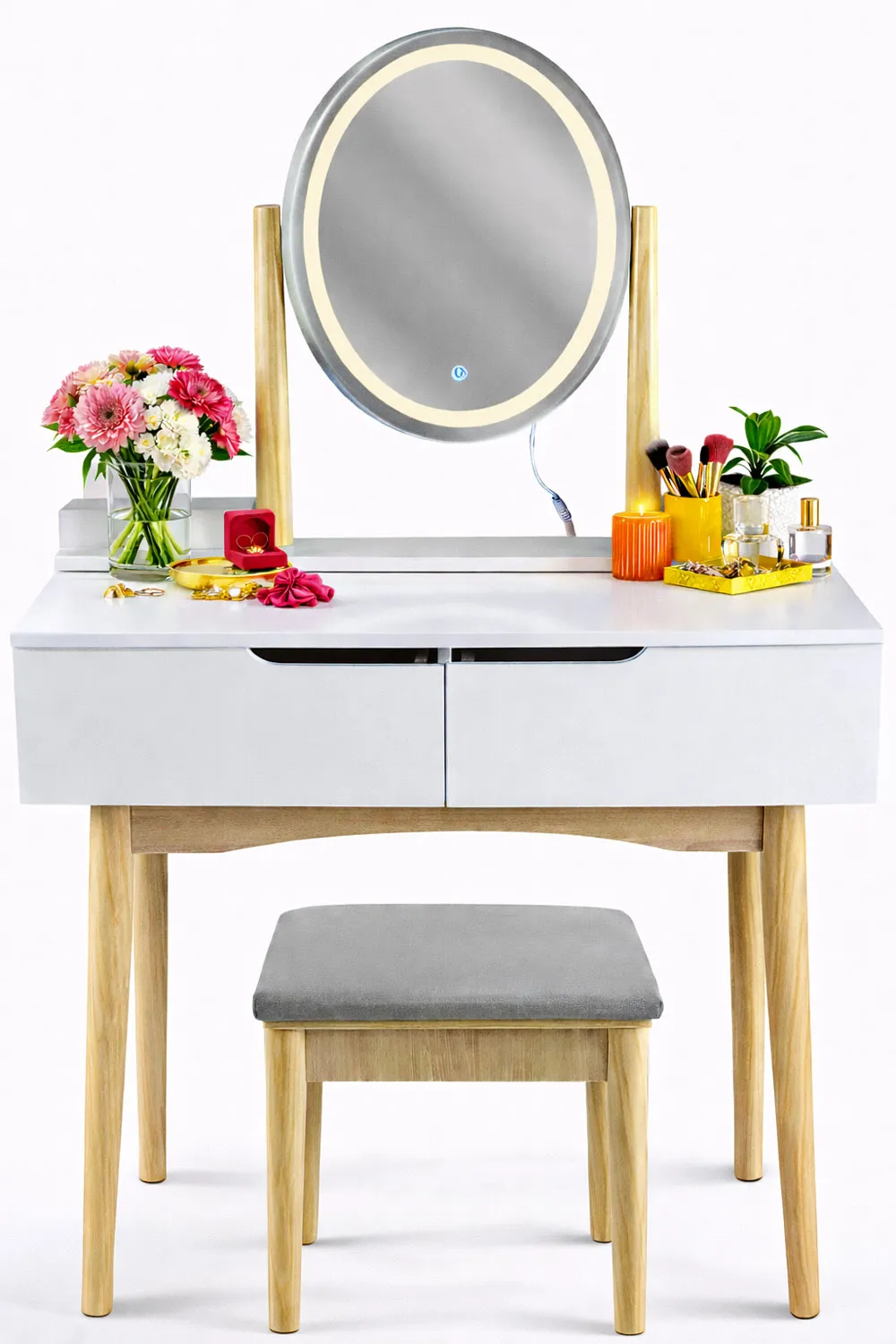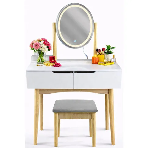 Dotyczy: Biała toaletka z lustrem LED i beżowym stołkiem - Vakos