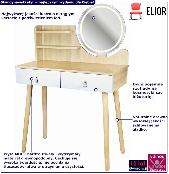 Dotyczy: Biała toaletka kosmetyczna z lustrem LED - King 7X
