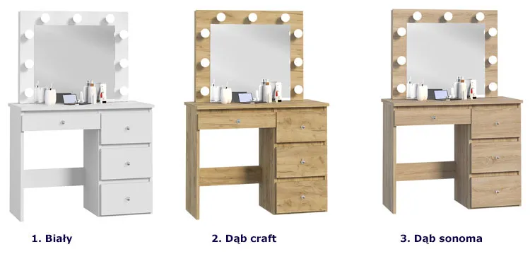 • Kolor: dąb craft. W naszej ofercie posiadamy także inne toaletki glamour.