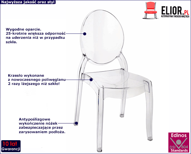 • Modna kolorystyka: transparentny. Sprawdź także inne krzesła transparentne w naszej ofercie i znajdź takie, które najbardziej wpasuje się w wystrój Twojego mieszkania.